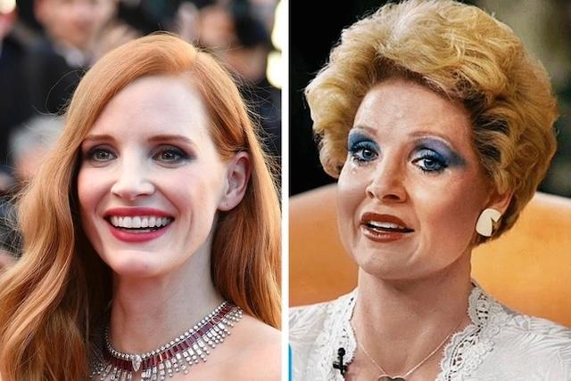 Jessica Chastain’s portrayal of Tammy Faye Bakker in The Eyes of Tammy Faye is one of the most remarkable transformations of her career. She not only altered her appearance drastically but also captured the emotional depth and complexity of the real-life figure, earning widespread acclaim.