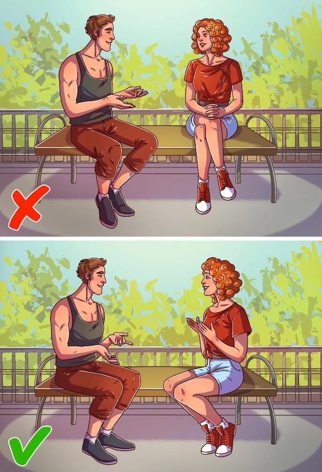 When someone feels comfortable with you, their body language will naturally be open and relaxed. If they keep their hands visible and their posture is relaxed—shoulders down, arms uncrossed—it shows they are emotionally at ease in your presence. This openness reflects trust and a desire for connection.