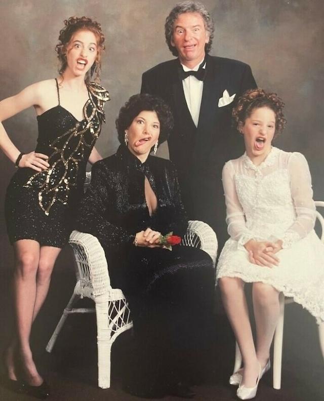 During a family photo shoot at her sister’s Bat Mitzvah, the mom’s exaggerated expressions outshone everyone else’s quirky faces. This photo serves as a reminder of the humor and love that shines through family celebrations.