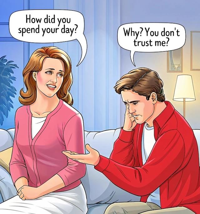 Everyone has moments of defensiveness, but if your partner becomes overly defensive during casual conversations, it may be a sign that something is bothering them. This defensive behavior often arises from feelings of guilt or fear of being accused of something.