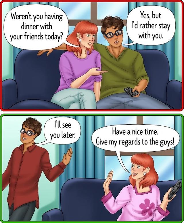• Plan outings with friends or family while encouraging your partner to do the same.