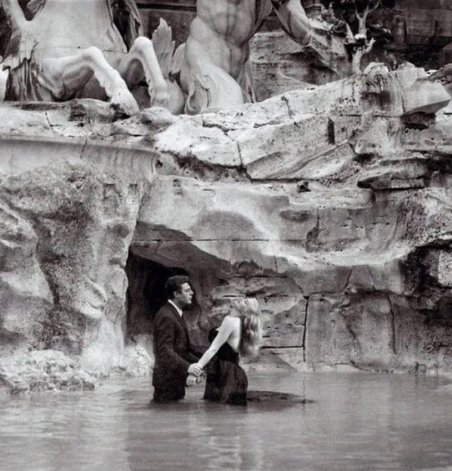 Watch the video La Dolce Vita – Anita Ekberg and Marcello Mastroianni at the Trevi Fountain (Rome) to experience this iconic scene from the classic film.
