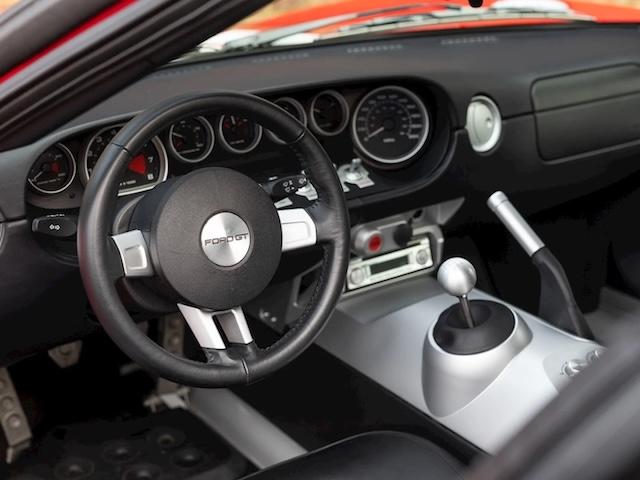 Inside the cabin, the Ford GT embraced simplicity and functionality. The interior featured brushed metal trim, large, easy-to-read gauges, and a small-diameter three-spoke steering wheel. The driver sat low, surrounded by high-tech controls and toggle switches, giving the car an almost racecar-like atmosphere. While visibility was limited due to the low-slung nature of the vehicle, the overall driving experience was one of precision and excitement.