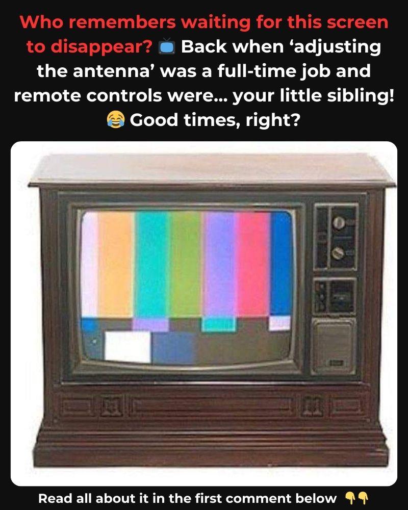 Test patterns — like the colorful bars shown in the image — also had their own charm. They would appear when broadcasts ended for the day. Unlike today’s 24/7 programming, TV channels “signed off” late at night and didn’t return until morning, creating a shared understanding that it was time to rest.