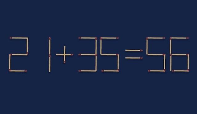 Ta-da! The equation now makes sense. 21 + 35 = 56 is indeed a correct equation, and all it took was moving two matchsticks!