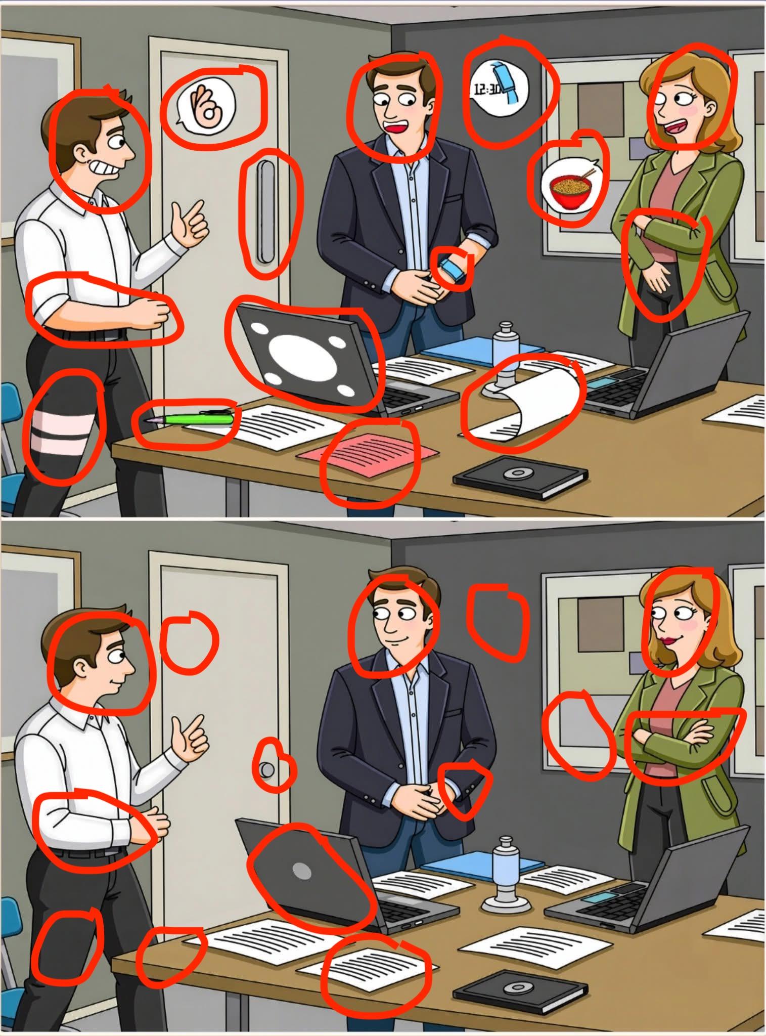- It’s natural to focus on faces and gestures first—but many differences hide in peripheral details.