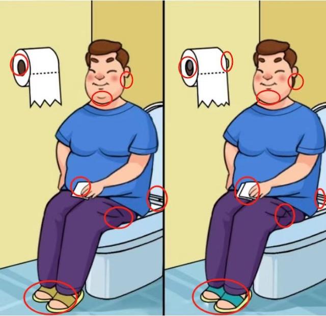 Here’s a pair of nearly identical illustrations—one subtle detail changed eight times. Your mission: spot all 8 differences between the two men sitting on a toilet before time runs out! Think you’ve got eagle‐eyes? Give it 10 seconds and see how many you can name.