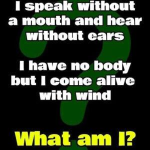 Here’s a riddle that will really make you think: “I speak without a mouth, I hear without ears, I have no body but I come alive with…