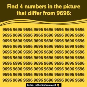 Think you’ve got laser-sharp focus? Our latest brain-teaser challenges you to find four sequences that aren’t “9696” hidden among a sea of identical numbers. Racing against the…