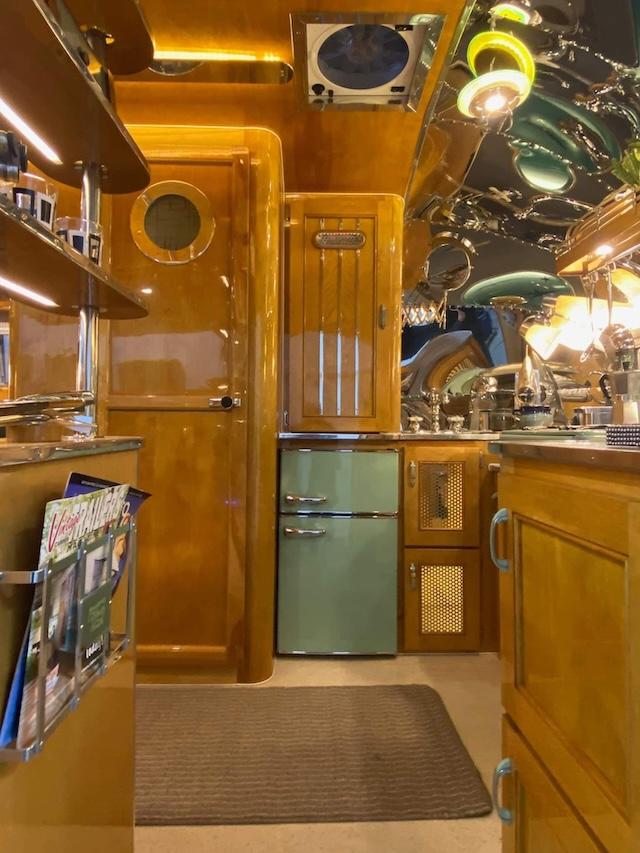 For Pine, the Airstream is not just a travel trailer; it’s a piece of art. He was drawn to it because of its focus on quality and craftsmanship. The restoration of the Airstream was done by a former cameraman from Jimmy Kimmel Live!, who found his passion in both Airstreams and ceramics. “I don’t know, like… cars are made out of plastic now. This is made out of wood and metal and this beautiful, recessed lighting,” Pine shares with pride.