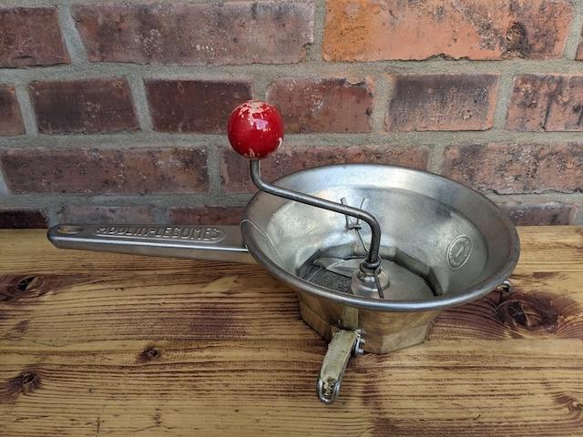Fun fact: The vintage food mill was also an important tool during wartime. With food rations in place, many families had to make the most of what they had, turning leftover vegetables into purees or soups for sustenance. The food mill provided a quick and efficient way to prepare meals from limited resources, making it an essential tool during difficult times.