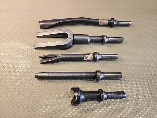 - Pristine, Unused Sets: It’s not uncommon to find original air hammer boxes from the 1960s containing a suite of chisels—flat, pointed, and tapered—all in nearly new condition, still bearing manufacturer price tags in faded green ink.