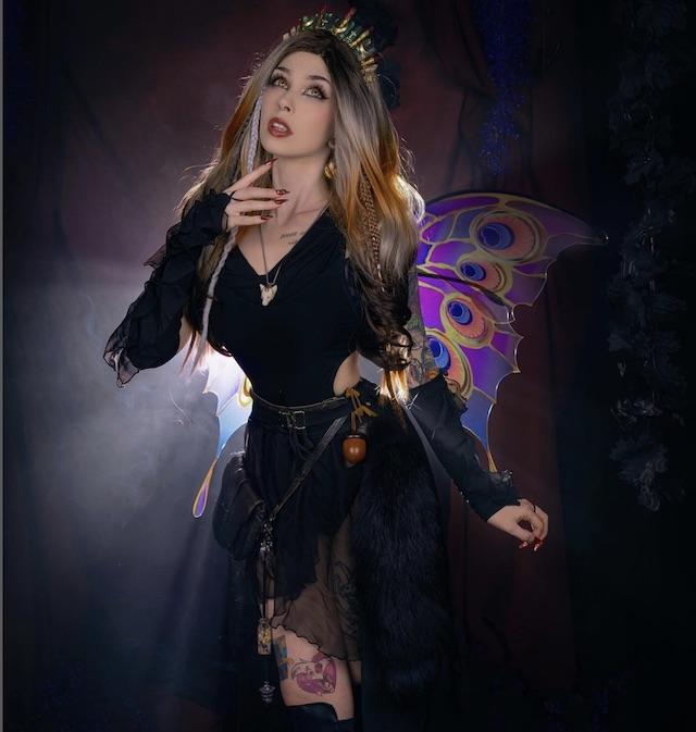 Ember Wolf’s cosplays are known for their unusual and imaginative twists, with her love for Japanese anime fueling her creativity. She masterfully brings characters to life in a way that is both quirky and visually stunning. Whether she’s portraying dark, enigmatic figures or vibrant, playful anime icons, Ember’s attention to detail and artistic skill are on full display. Her transformations often combine vibrant colors with otherworldly elements, making each look both dramatic and unique.