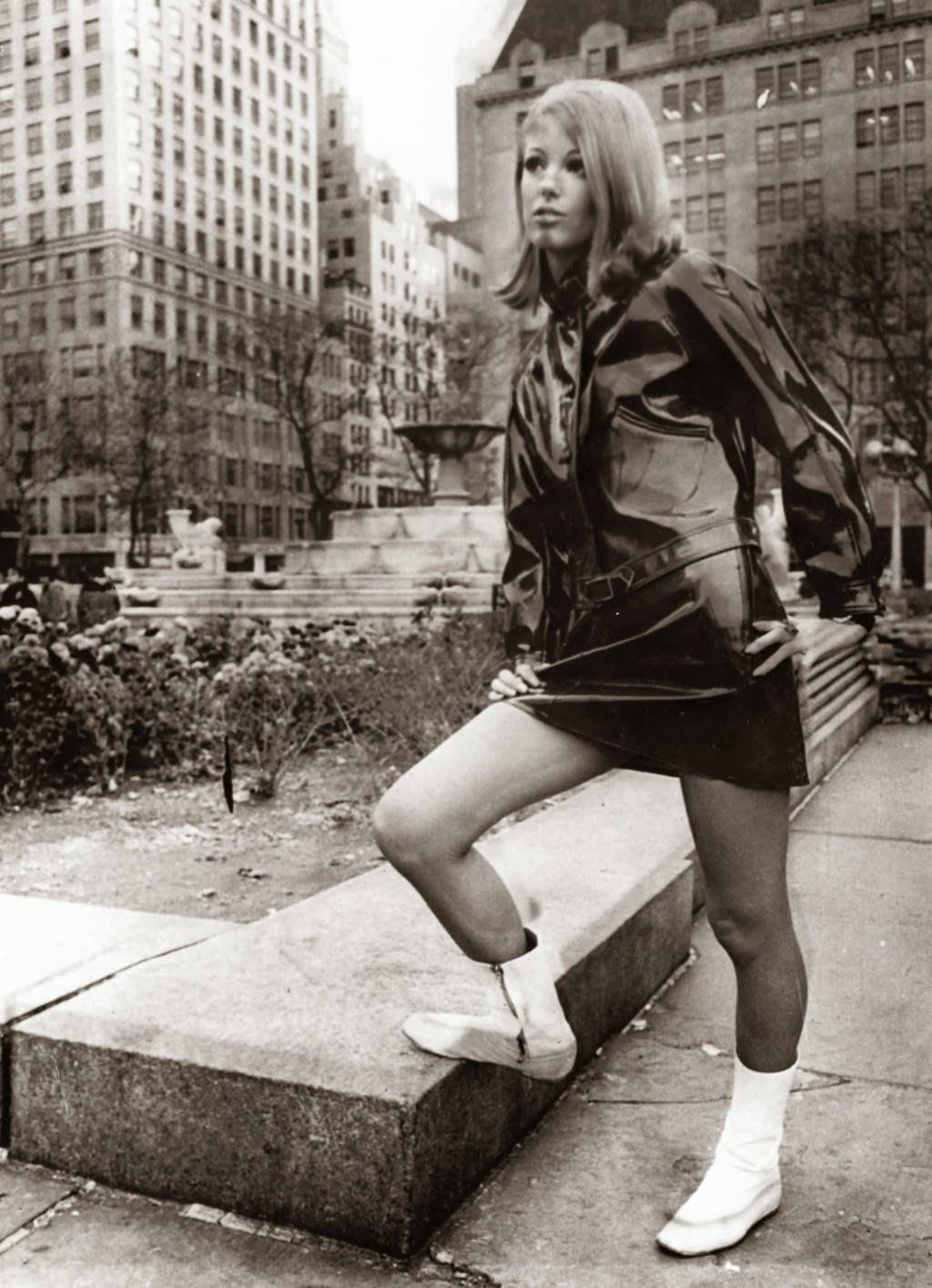 By 1966, the miniskirt had become mainstream in the United States. Skirts now reached the upper thigh, and stockings were replaced by tights, creating a more modern and practical look. Boots also began to make their mark, with knee-high, over-the-knee, and even thigh-high designs complementing the miniskirt. The creativity of the era knew no bounds, as even body-hugging tights and vinyl boots were introduced, pushing the boundaries of fashion even further.