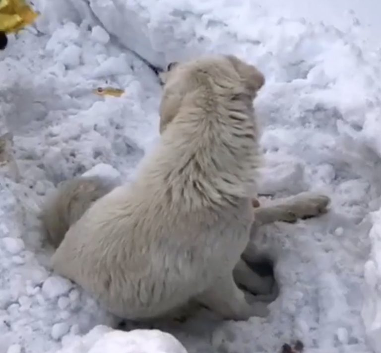 Curled tightly against the cold, his fragile body shook beneath a thin layer of snow and dirt. His breathing was shallow, uneven, barely visible unless you stood close enough to notice the faint rise and fall of his chest. He didn’t lift his head when rescuers approached. Not because he didn’t hear them—but because he no longer had the strength to respond.