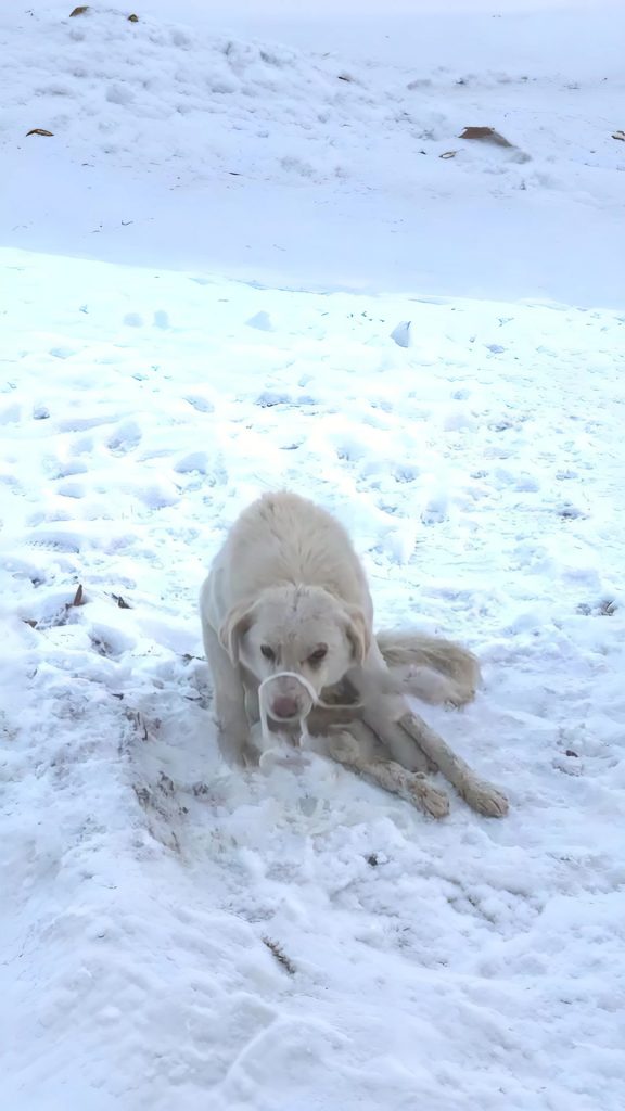 Eventually, Ice was ready to go outside again. With a harness and patient hands guiding him, he stepped onto solid ground. His movements were careful, but they belonged to him. For those who had first seen him lying motionless in the snow, the moment felt extraordinary.