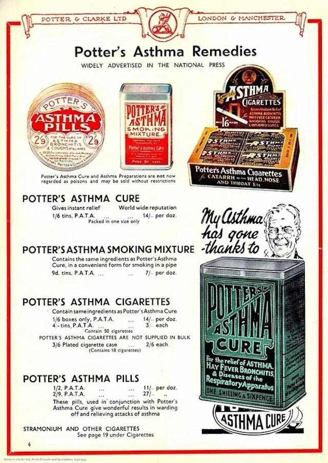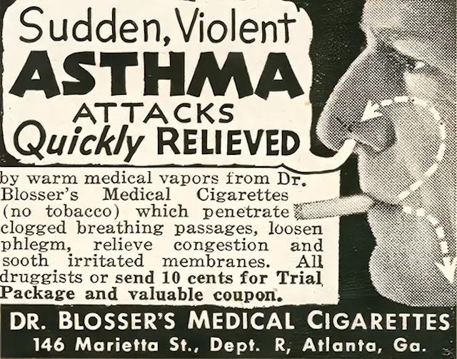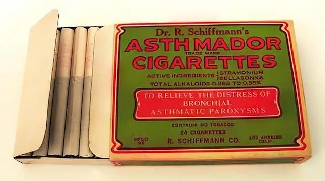 In the late 19th and early 20th centuries, “Asthma Cigarettes” became a popular treatment for respiratory ailments. These cigarettes, which often contained a mixture of herbs and narcotics like stramonium, were marketed as a solution for asthma and other breathing issues. Stramonium, while it did open airways temporarily, also had severe side effects, including hallucinations, nausea, and rapid heart rate. Despite these dangers, products like Potter’s Asthma Cigarettes and Dr. Kellogg’s Asthma Remedy gained widespread popularity. Even famous figures like the French author Marcel Proust were known to use these cigarettes, though Proust described the misery of using them during asthma attacks. Over time, the harmful effects of these substances led to their eventual decline.