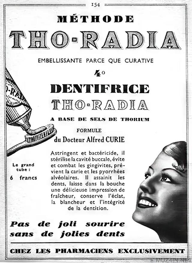 As radiation became a hot topic in the early 20th century, many companies began incorporating radioactive materials into consumer products, including toothpaste. One of the most infamous was “Thorium Toothpaste,” which contained thorium chloride. Marketed as a way to kill bacteria and promote better oral hygiene, the toothpaste’s glowing properties were presented as a sign of its effectiveness. However, exposure to radium and other radioactive elements led to serious health issues, including bone fractures, anemia, and necrosis of the jaw. Over time, the dangerous effects of radiation became evident, leading to the discontinuation of these products.