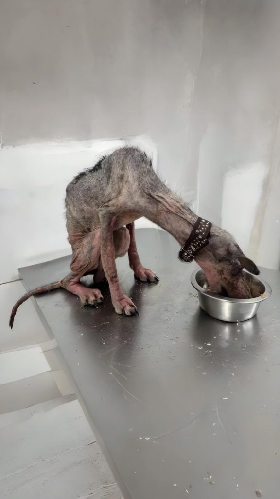 Treatment began immediately. His wounds were cleaned, medication applied, and parasites treated. Zeus stayed still through it all, too tired to resist, too weak to react. When they were finished, a bowl of warm, soft food was placed in front of him.