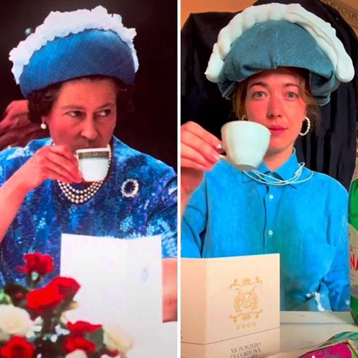 One of Angelica’s standout features is her talent for recreating some of the most iconic and luxurious celebrity outfits using items that are likely already sitting in your kitchen. From Taylor Swift’s Oscar de la Renta dress made of tinsel garland to Heidi Klum’s Lever couture dress, Angelica nails every look with her absurd, hilarious, and undeniably creative style.