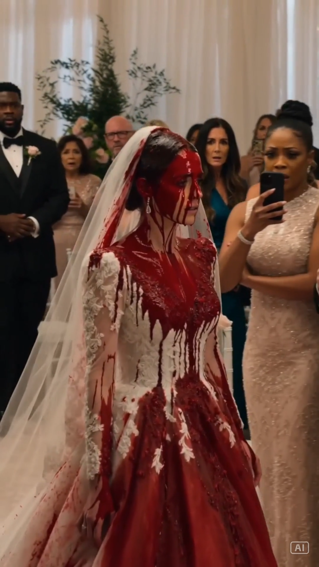 Vivian stood there dripping red under the bridal lights, stripped in one second of all the immaculate control she had spent a lifetime curating.