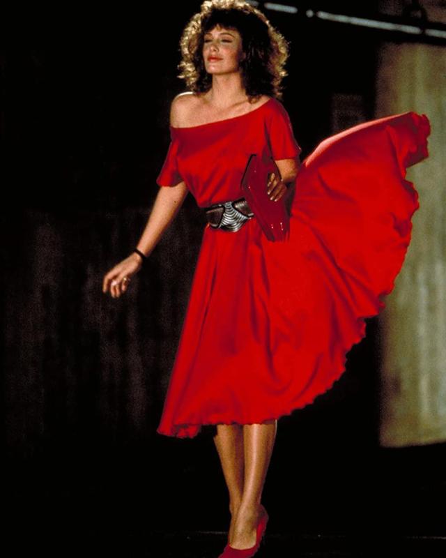 Fashion plays a crucial role in The Woman in Red, with LeBrock’s red dress serving as the ultimate symbol of 1980s glamour. The vibrant color, the voluminous design, and the way the dress flows in the wind make it more than just an outfit—it becomes an integral part of the story. The dress represents Charlotte’s allure and mystery, making her character unforgettable to audiences.