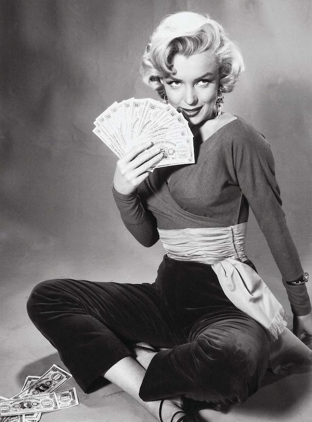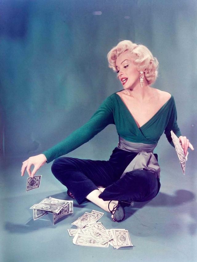 Throughout 1953 and 1954, Florea continued to document Monroe on the set of her films. One of the most iconic images from this period comes from the filming of Gentlemen Prefer Blondes. In it, Monroe, dressed as the gold-digging Lorelei Lee, sits cross-legged, counting a pile of money with a playful grin on her face. This photo encapsulated Monroe’s on-screen persona perfectly: glamorous, witty, and undeniably charming.