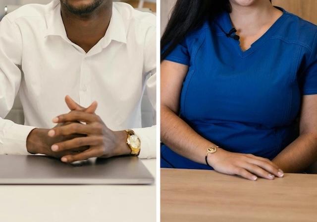 Hand gestures can be a powerful tool during communication. While not everyone naturally uses hand movements while speaking, incorporating them into your responses can help you come across as more confident and engaged. If you tend to fidget or have trouble keeping your hands still, focus on positioning them in a neutral place, like on the desk in front of you. Resting your palms one over the other or clasping your hands together keeps them relaxed and ready to move when needed.