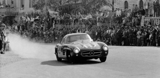 The responsibility for developing this new sports car fell to Mercedes’ head of passenger car engineering, Rudolph Uhlenhaut. Using parts from the newly introduced 300 luxury sedan, Uhlenhaut’s team created a racing car in just nine months, designated W194. Despite being heavier than originally planned—about 1,900 pounds—the car was designed with an aerodynamic body, and a six-cylinder engine mounted at a 50-degree angle to ensure optimal performance.