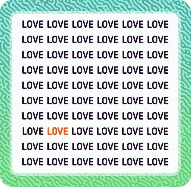 Examine each “Love” closely. Pay special attention to the letter “O.” In one instance, you might see a slight difference—a shape that’s more angular or a different font style. This is your first clue!