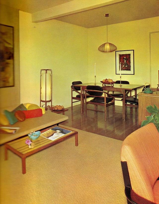 Perhaps the most striking characteristic of 1960s home décor was the use of bold and vibrant colors. Shades of green—ranging from pea green to muted olive—were often seen alongside bright oranges, peaches, and saffrons. These colors were not limited to wall paint alone but extended to carpets, cushions, curtains, and even upholstery. In fact, furniture materials such as polypropylene were developed to match these vivid hues, allowing for a seamless integration of color throughout the home.