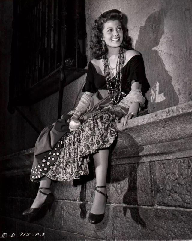 The behind-the-scenes portraits taken during the production of The Loves of Carmen offer an intimate look at the actress during one of her most iconic periods. These vintage photos capture Hayworth not only in her stunning costumes but also in moments of quiet contemplation between takes.