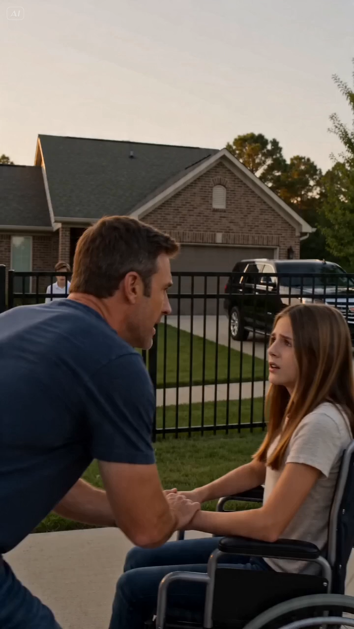 My father dropped to his knees beside my wheelchair so fast the gravel bit into his trousers.