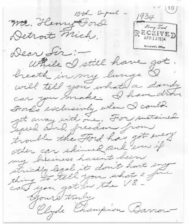 So impressed was Clyde with the Ford V8’s performance that he penned a letter to Henry Ford in April 1934, expressing his appreciation: