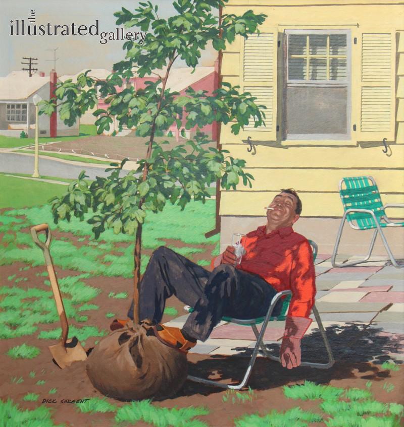 Sargent’s work also reflected the balancing act between work and leisure in the post-war American lifestyle. One of his pieces humorously depicts a man who, instead of planting a tree, decides to relax under the shade of it, enjoying a drink and a cigarette. This playful take on the common struggle between responsibility and relaxation highlights Sargent’s ability to find humor in even the most mundane situations.