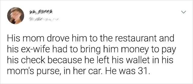 Expectations for financial independence are common in adult relationships, so when a 31-year-old man showed up to a date with his mother driving him to the restaurant, it was an instant red flag. But the situation only got worse. After finishing the meal, the man realized that he had forgotten his wallet. His ex-wife had to drive over to pay for the bill because his wallet was sitting in his mom’s purse in her car. It was an uncomfortable moment that left his date questioning his maturity and level of independence. It also serves as a stark reminder of the importance of being prepared, especially when it comes to something as simple as having the means to pay for a date.