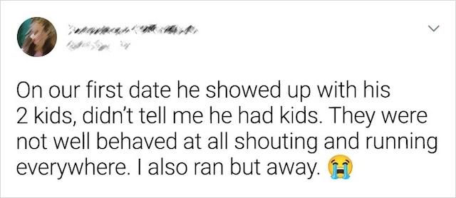 One first date took a turn for the worse when a man unexpectedly brought his two kids with him—without giving his date a heads-up. The kids were not only present but misbehaving, running around and making noise throughout the evening. She was shocked and left feeling overwhelmed, not knowing how to react. What was supposed to be a quiet, intimate dinner turned into an episode of chaos, and she quickly excused herself from the situation. The experience proved that transparency and clear expectations are crucial when it comes to dating. No one wants to be blindsided with a surprise family dynamic on a first date.