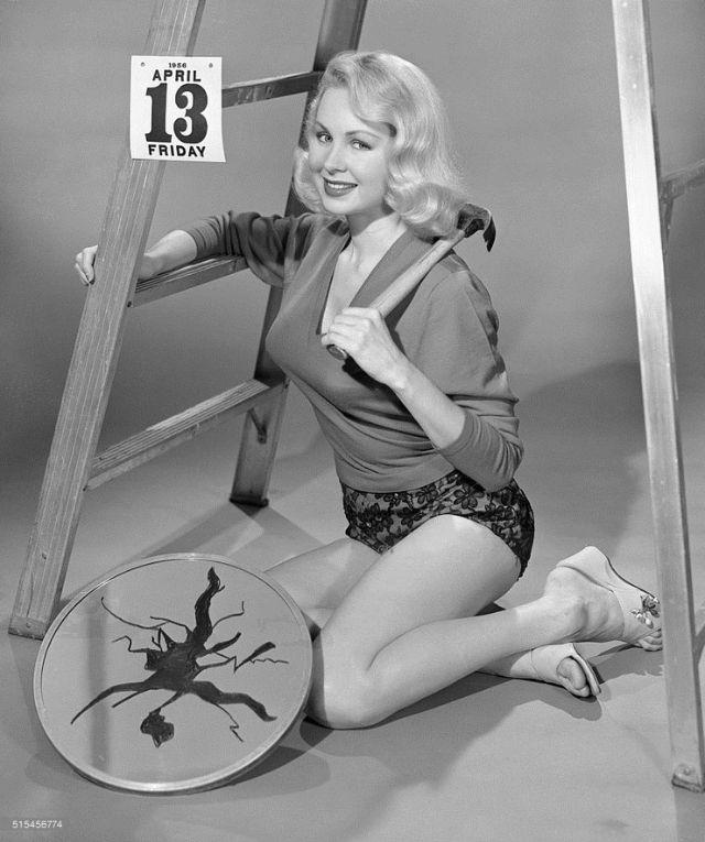 In these rare and fabulous photos, you’ll see Joi Lansing at her most radiant. From candid moments behind the scenes to poised shots on the red carpet, each photograph captures the actress’s effortless beauty. Her long, flowing blonde hair, perfectly done makeup, and confident presence made her an unforgettable icon of the time. These images remind us why she was considered one of the most photographed women of the 1950s.