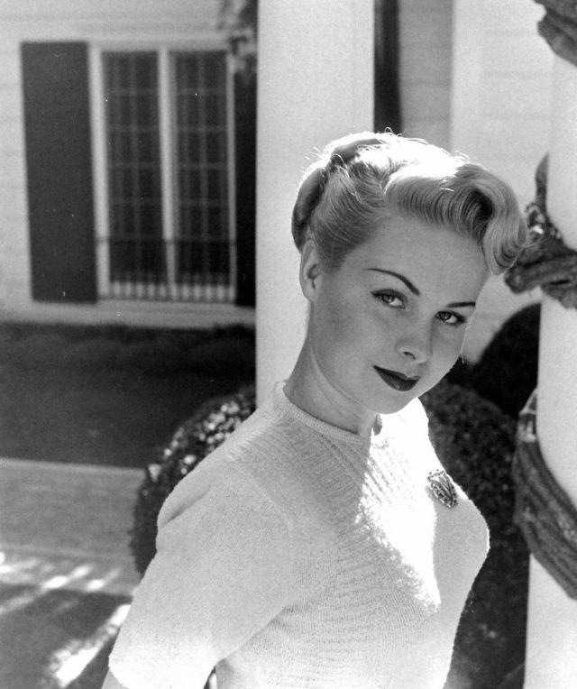 Though many actresses of the time embodied the idealized image of femininity, Lansing’s refined yet accessible beauty made her stand out. Whether she was cast in a light comedy or a more dramatic role, her look was both timeless and modern, making her an enduring icon of classic beauty in the entertainment industry.