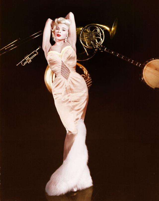 Mansfield was also known for her more risqué moments in the public eye. She was infamous for her wardrobe malfunctions, with her clothing often revealing more than intended. One of her most famous incidents occurred in 1957 when her dress famously “fell open” during a press event, exposing her famous curves to the media. Far from shy, she laughed it off and even posed for pictures with her usual charm. Mansfield’s ability to turn such potentially embarrassing moments into part of her allure added to her reputation as a free-spirited and fun-loving star.