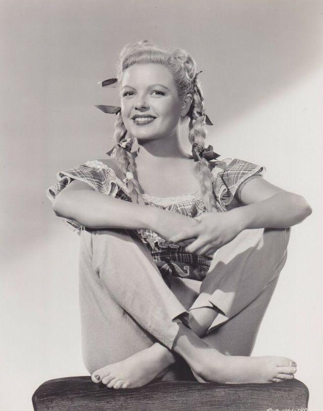 Today, as we celebrate the remarkable career of Marjorie Reynolds, we are reminded of a time when film was a blend of art and emotion. Her contributions continue to resonate, inspiring both those who love classic cinema and new generations of performers. The photographs from the 1940s serve as cherished mementos of an era defined by beauty, elegance, and heartfelt expression. They capture not only the visual allure of a celebrated actress but also the enduring spirit of a woman who lived her life with quiet dignity and passion.