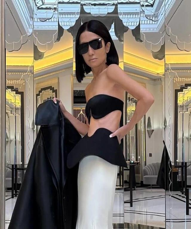 Famous for her ultra-long, jet-black hair, Vera stunned attendees by chopping off her signature locks and opting for a chic, sleek bob. Her new hairstyle was the talk of the event, with many marveling at the dramatic change. Vera paired the daring cut with a bold, monochromatic gown that perfectly complemented her fresh look. The gown featured a black bra top with mesh netting and a striking peplum black-and-white skirt, adding a contemporary twist to her already iconic style.