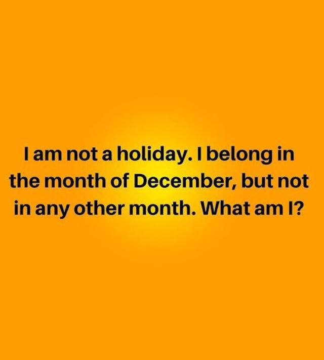 The Riddle: “I am not a holiday. I belong in the month of December, but not in any other month. What am I?”