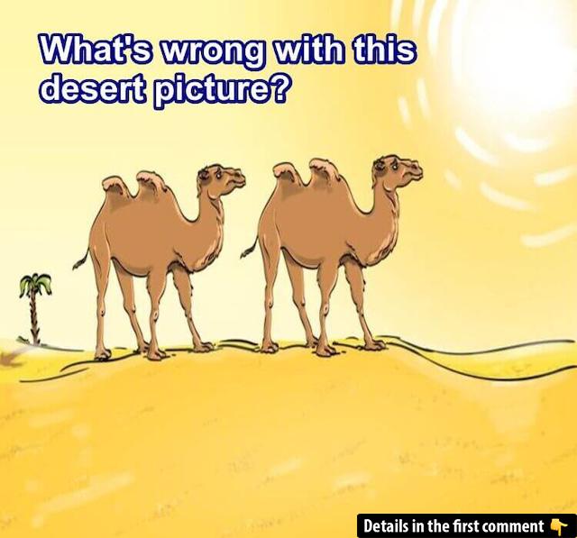 Take a closer look at the desert! Notice anything odd? The camels appear perfect, but the real mystery lies in the shadows—or rather, the lack of them. Can you explain why?