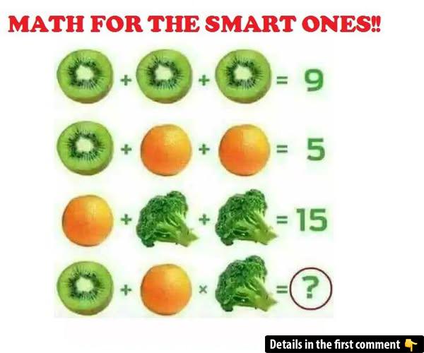 At first glance, these equations look simple. But the final line—Kiwi + Orange × Broccoli = ?—often snares eager solvers who forget one key rule. Will you catch the trick? Work through each step, then share your answer in the comments!