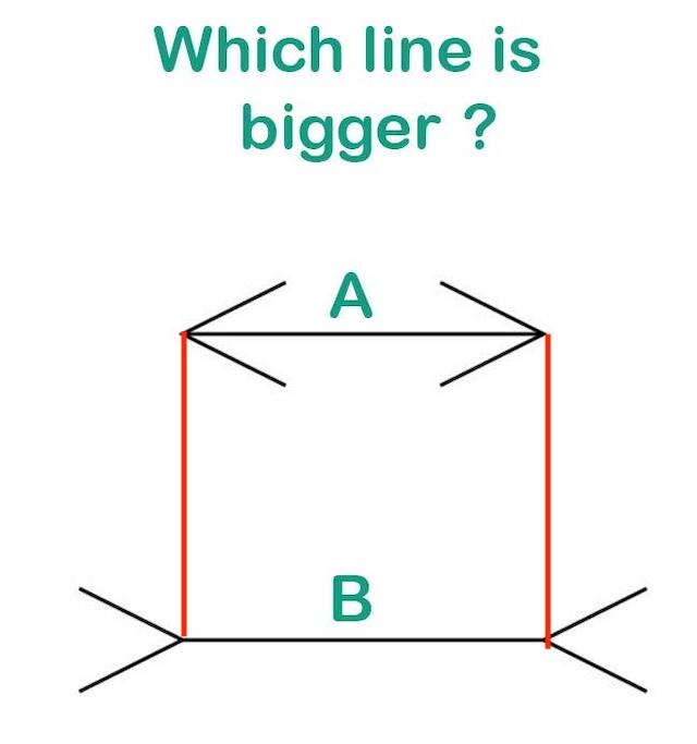 Many people instinctively think that line A is longer than line B, but is that really the case? Go ahead, try to spot which one is truly bigger and comment below with your answer. Let’s see if you can crack this visual puzzle!