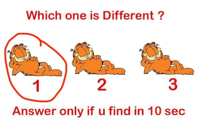So, which one did you pick? If you guessed image 1, you’re absolutely correct! It’s the one with only 2 dots on the right side of Garfield’s face, making it the odd one out.